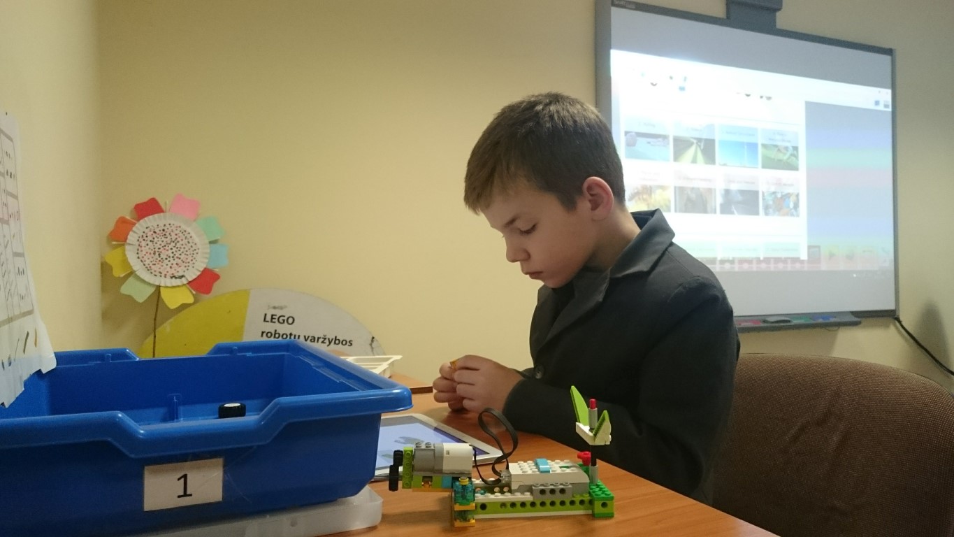 Būrelyje „Robotika vaikams ir programavimas“ 6–12 m. mokiniai konstruoja robotus iš LEGO® kaladėlių, juos programuoja ir išbando įvairioms užduotims. Taip nuosekliai laviname atmintį, kūrybiškumą, erdvinį suvokimą, loginį mąstymą ir bendradarbiavimą.